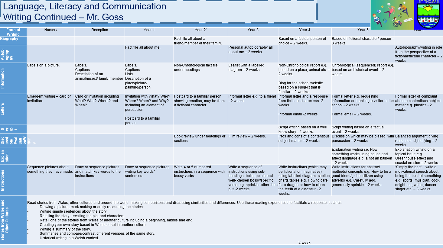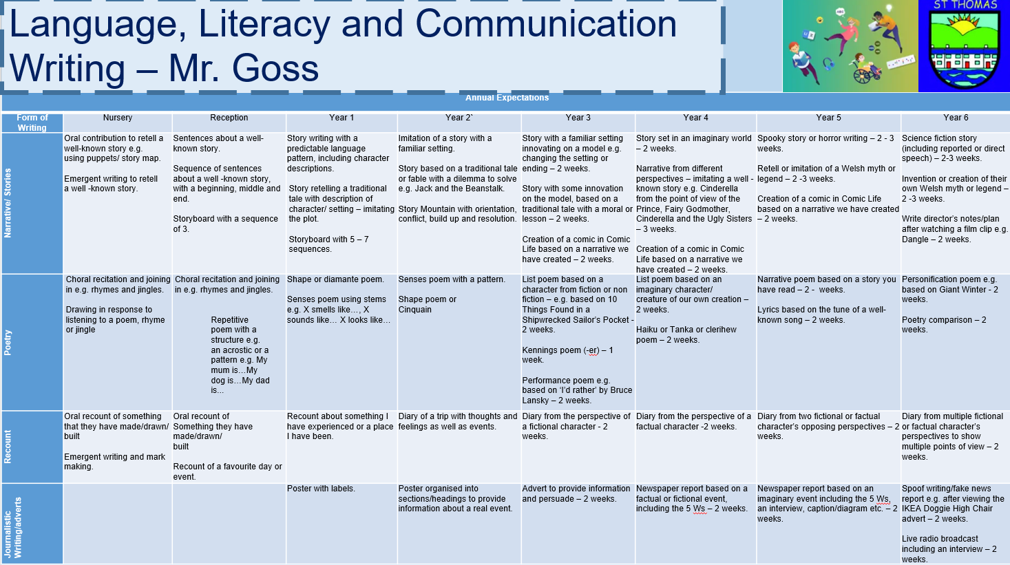 At St Thomas, our Languages, Literacy and Communication curriculum helps children develop strong skills in reading, writing, speaking and listening, as set out in the Curriculum for Wales. Pupils learn through a rich range of stories, information texts, poetry and different languages, helping them express themselves confidently and understand others.